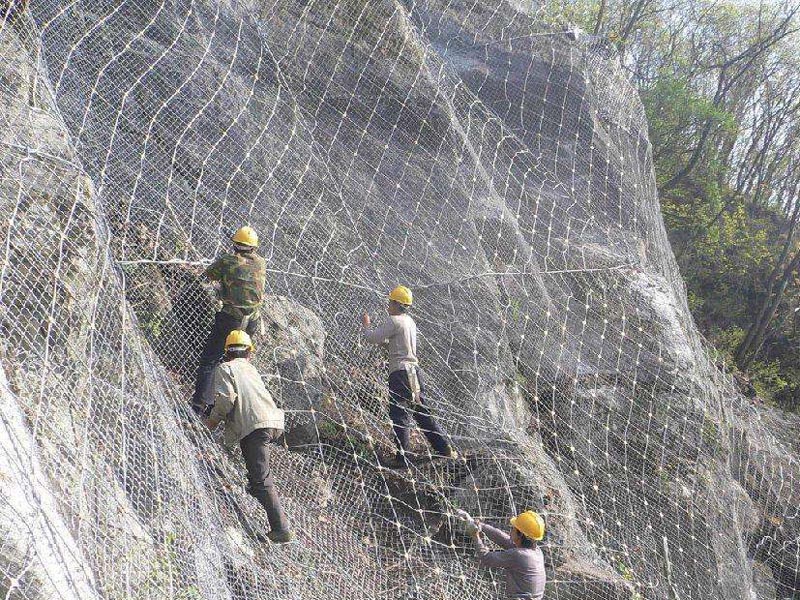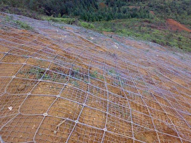 主動防護網是目前最有效的邊坡防護產品,主動防護網是將小片鋼絲繩網縫合在一起形成一張大網,將整個山體罩住,防止落石滾落。即使非常陡峭的邊坡也同樣可以采用主動防護網的方式進行防護,陡峭的山坡落石一旦風化,就極有可能發生塌方、滾落,傷及到路邊的行人與車輛。采用主動防護網進行防護,巖石風化、滾落也只能在主動防護網的控制范圍內運動。