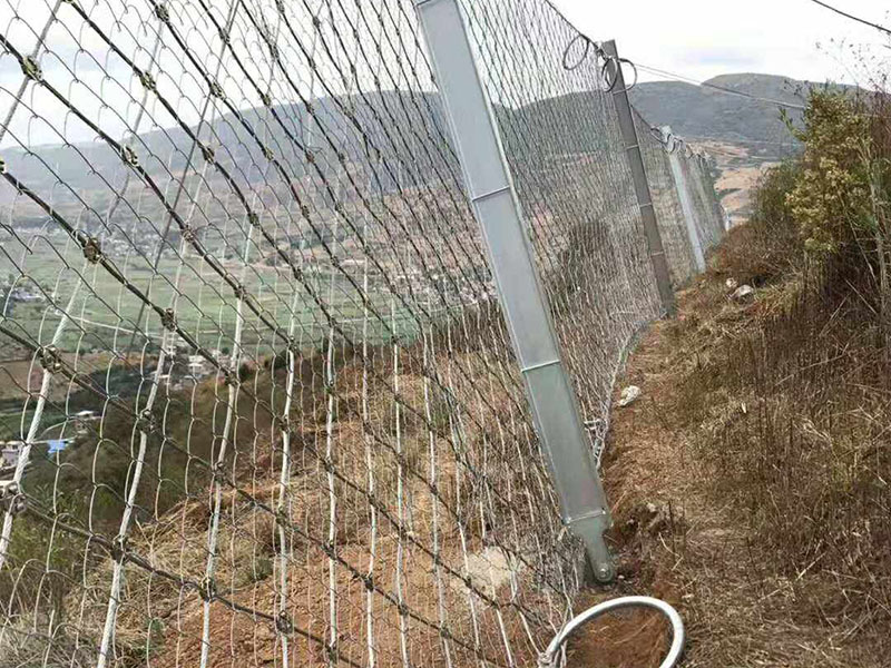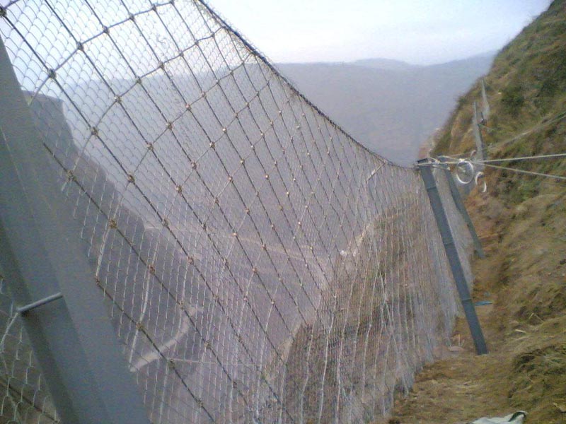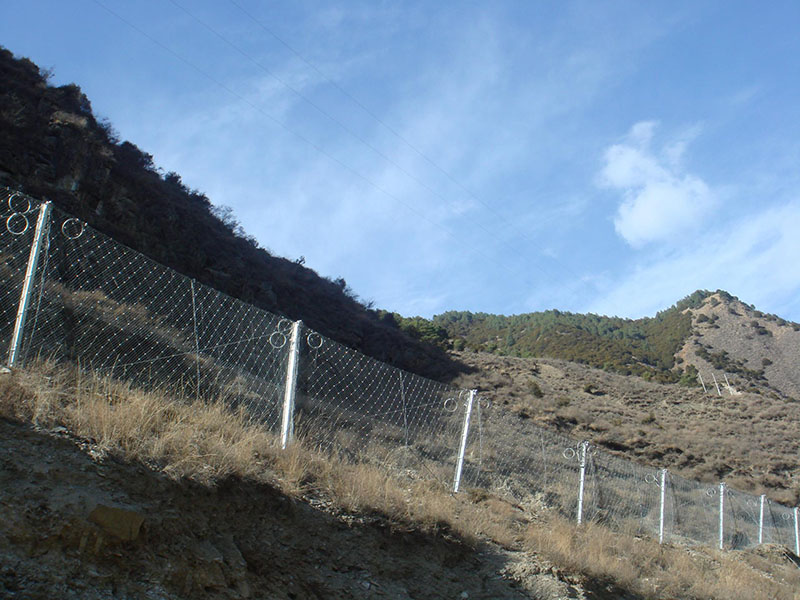 5. RX-075型被動防護(hù)網(wǎng)采用熱鍍鋅鋼絲繩編織而成,其防腐效果非常好在戶外條件下使用壽命長達(dá)50年。一般安裝在高速公路兩側(cè)、礦區(qū)、水庫、危險邊坡等地方。